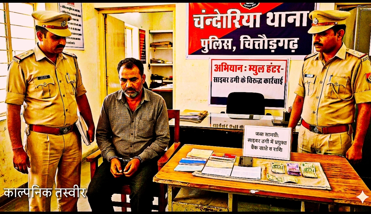 म्युल हंटर अभियान के तहत चंदेरिया पुलिस की बड़ी कार्रवाई Bank account operator used in cyber fraud arrested, transaction worth Rs 21.90 lakh exposed चित्तौड़गढ़, 16 अप्रैल। साइबर अपराधों की रोकथाम के लिए चलाए जा रहे विशेष अभियान “म्युल हंटर” के तहत चंदेरिया थाना पुलिस ने बड़ी कार्रवाई करते हुए