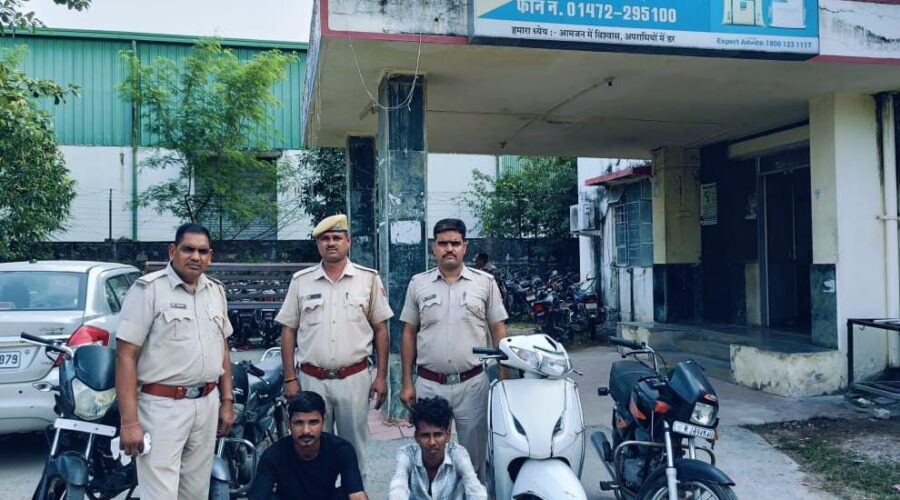 शहर के विभिन्न स्थानों से चोरी की तीन मोटर साईकले व एक स्कुटी बरामद दो आरोपी गिरफ़्तार