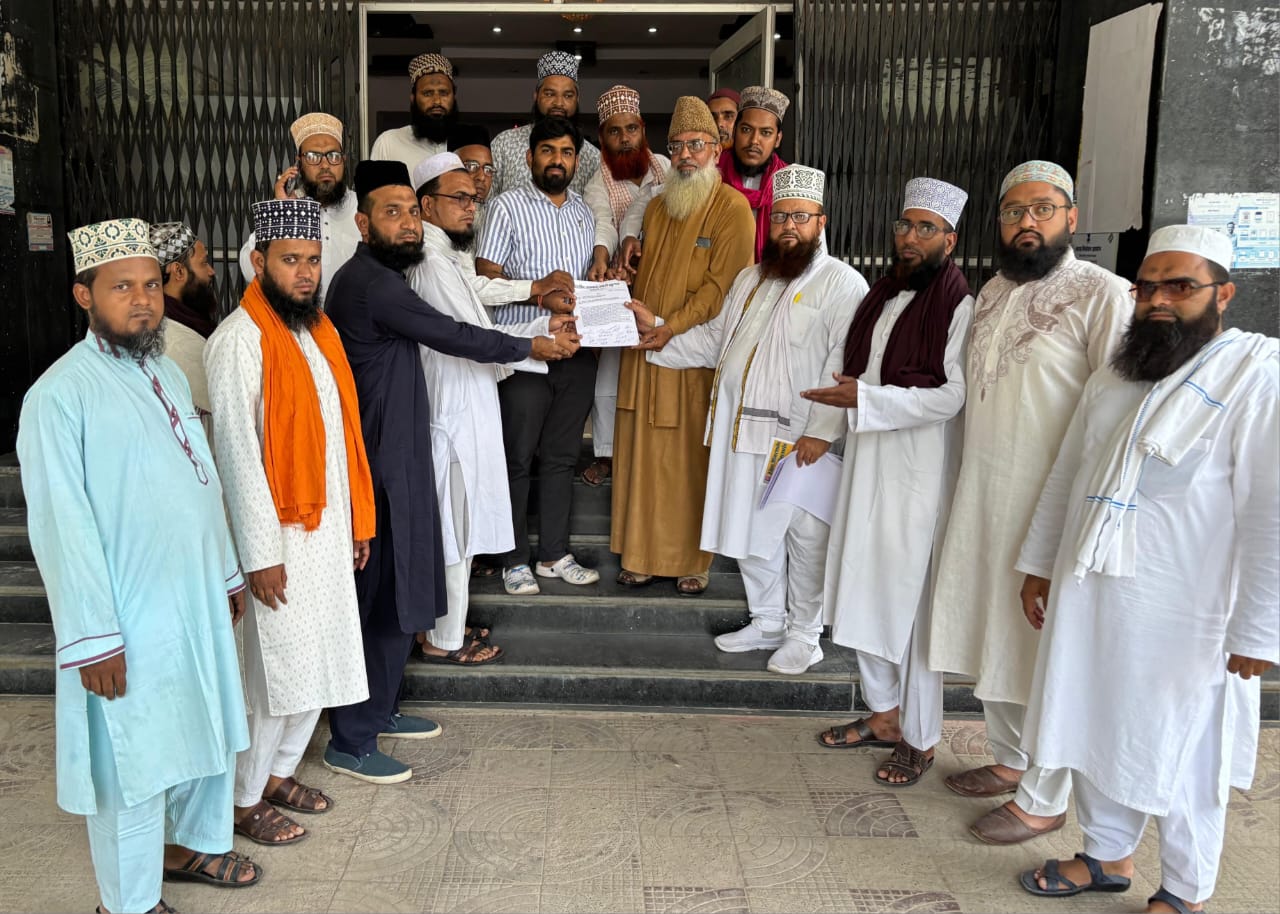 चित्तौड़गढ़। हाल ही में पुजारी यति नरसिहानंद सरस्वती के द्वारा दिए गए पैगंबर हजरत मोहम्मद सल्लाहो अलेह वसल्लम के बारे में विवादित बयान को लेकर देश भर के मुस्लिम समाज में आक्रोश है। इसी को लेकर शनिवार को तंजीम उल्माए अहले सुन्नत संस्था के बैनर तले मौलाना व मस्जिद के इमाम सहित समाज के शीर्ष व्यक्तियों के द्वारा राष्ट्रपति के नाम ज़िला कलेक्टर को ज्ञापन सौंपा कार्यवाही की मांग की हैं।