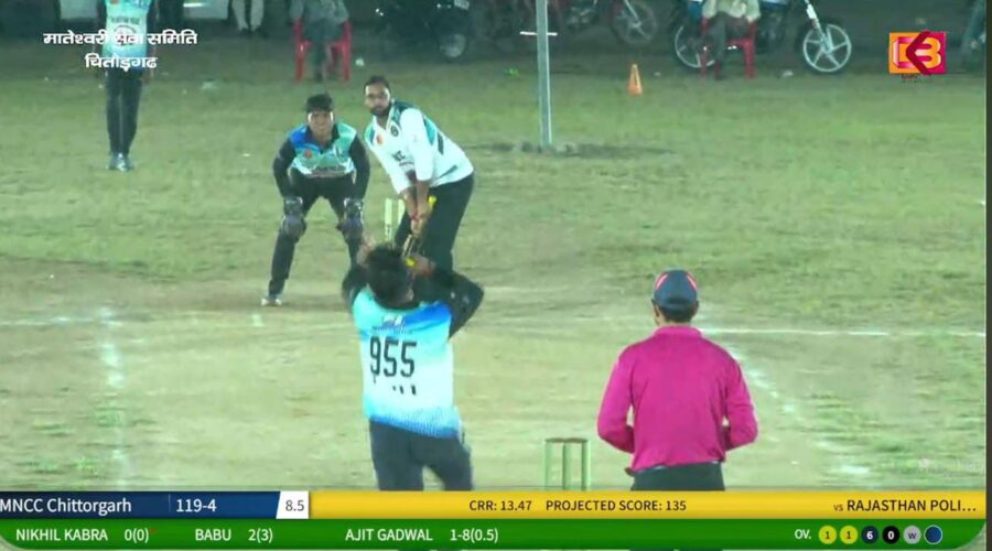 Exciting matches in night cricket competition at Chittorgarh चित्तौड़गढ़।(इलियास मोहम्मद) शहर के महाराणा प्रताप पीजी कॉलेज मैदान पर चल रही रात्रिकालीन क्रिकेट प्रतियोगिता में शुक्रवार को सभी लीग मैच पूरे हुए। आयोजन सचिव प्रशान्त चौधरी ने बताया की शुक्रवार को ग्रुप ए के अंतिम लीग मैच पूरे होने के बाद तीन टीम सेमी फ़ाइनल के … Continue reading रात्रिकालीन क्रिकेट प्रतियोगिता पहुंची रोमांचक दौर में, लीग मैच संपन्न