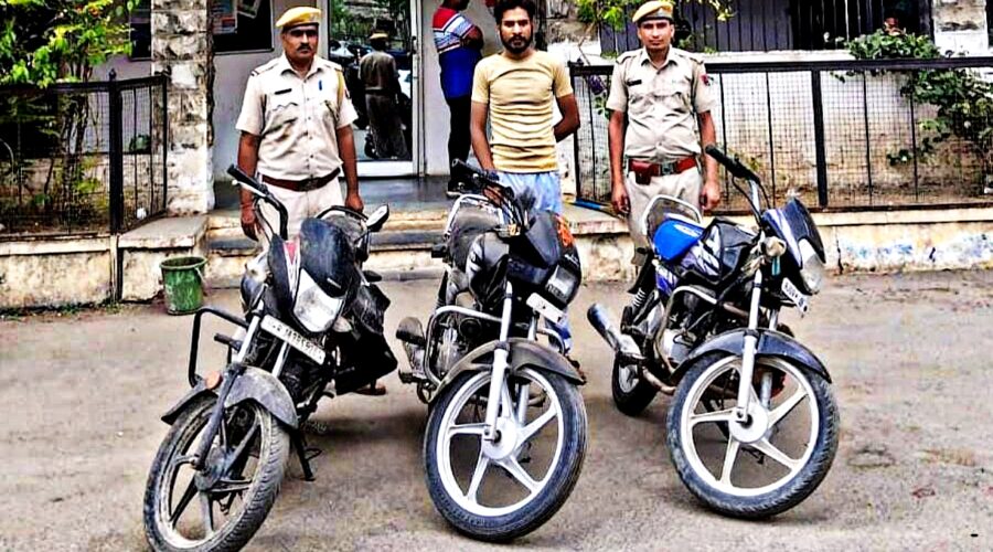 वाहन चोरी की घटना का पर्दाफाश, चोरी की तीन मोटर साईकिले बरामद, दो आरोपी गिरफ्तार।