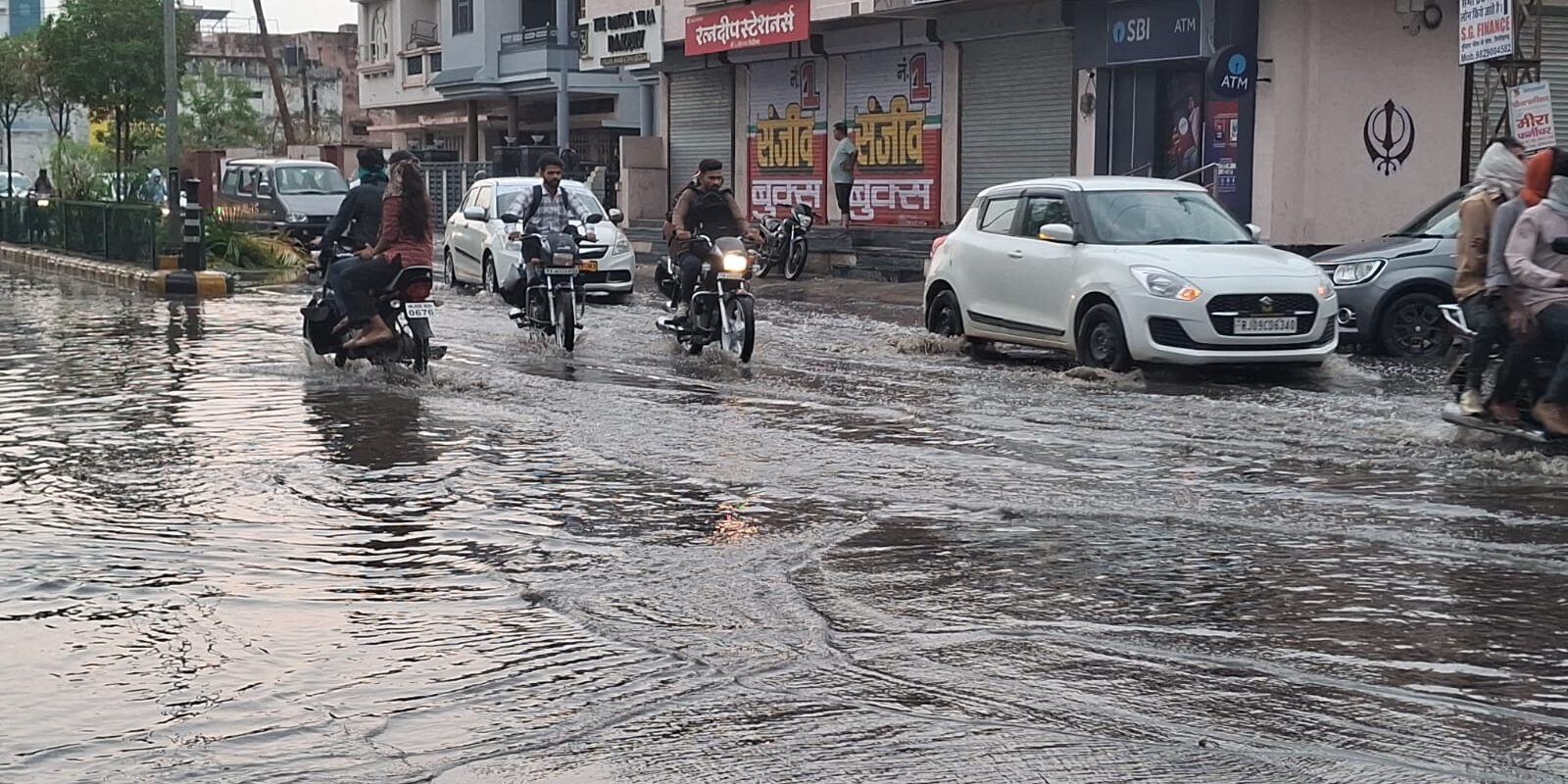 तेज बौछारों के साथ हुई बारीश से सड़के हुए जलमग्न