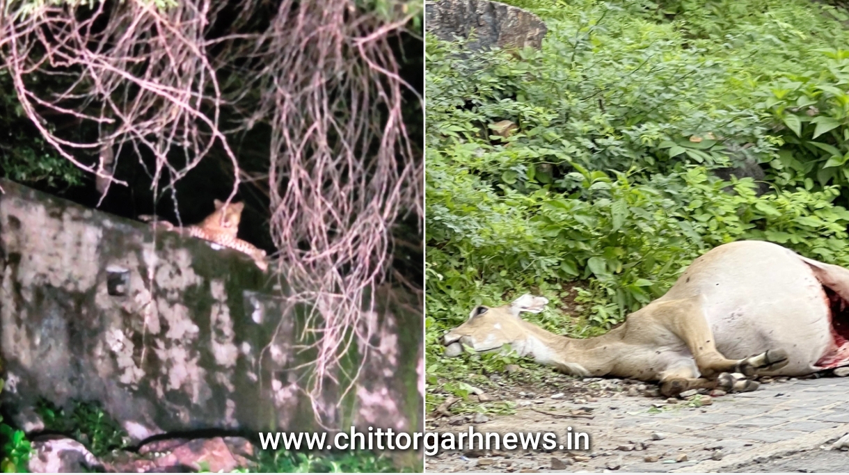 A panther hunted a Nilgai near Hanuman Pole in fort