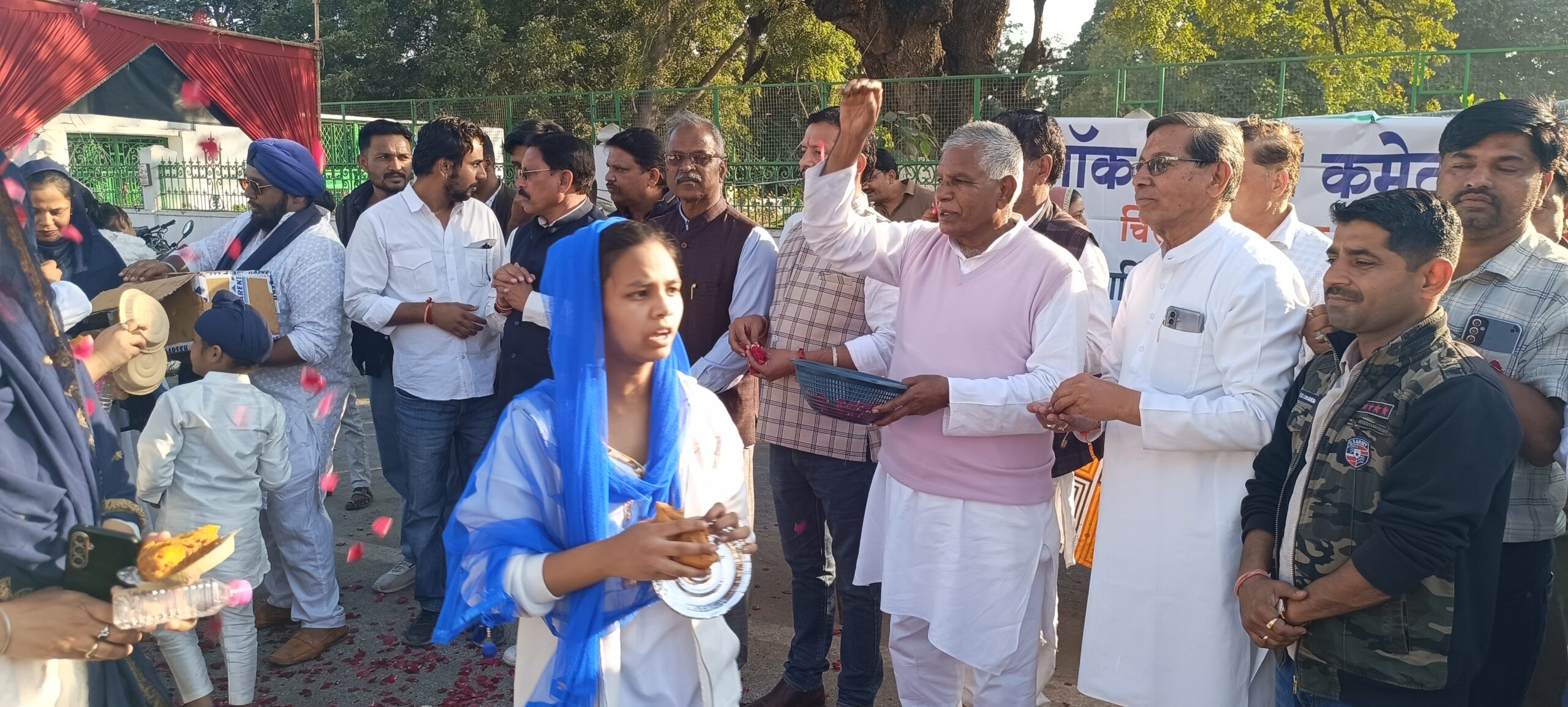 कांग्रेस कार्यकर्ताओं ने नगर कीर्तन का पुष्प वर्षा से किया स्वागत