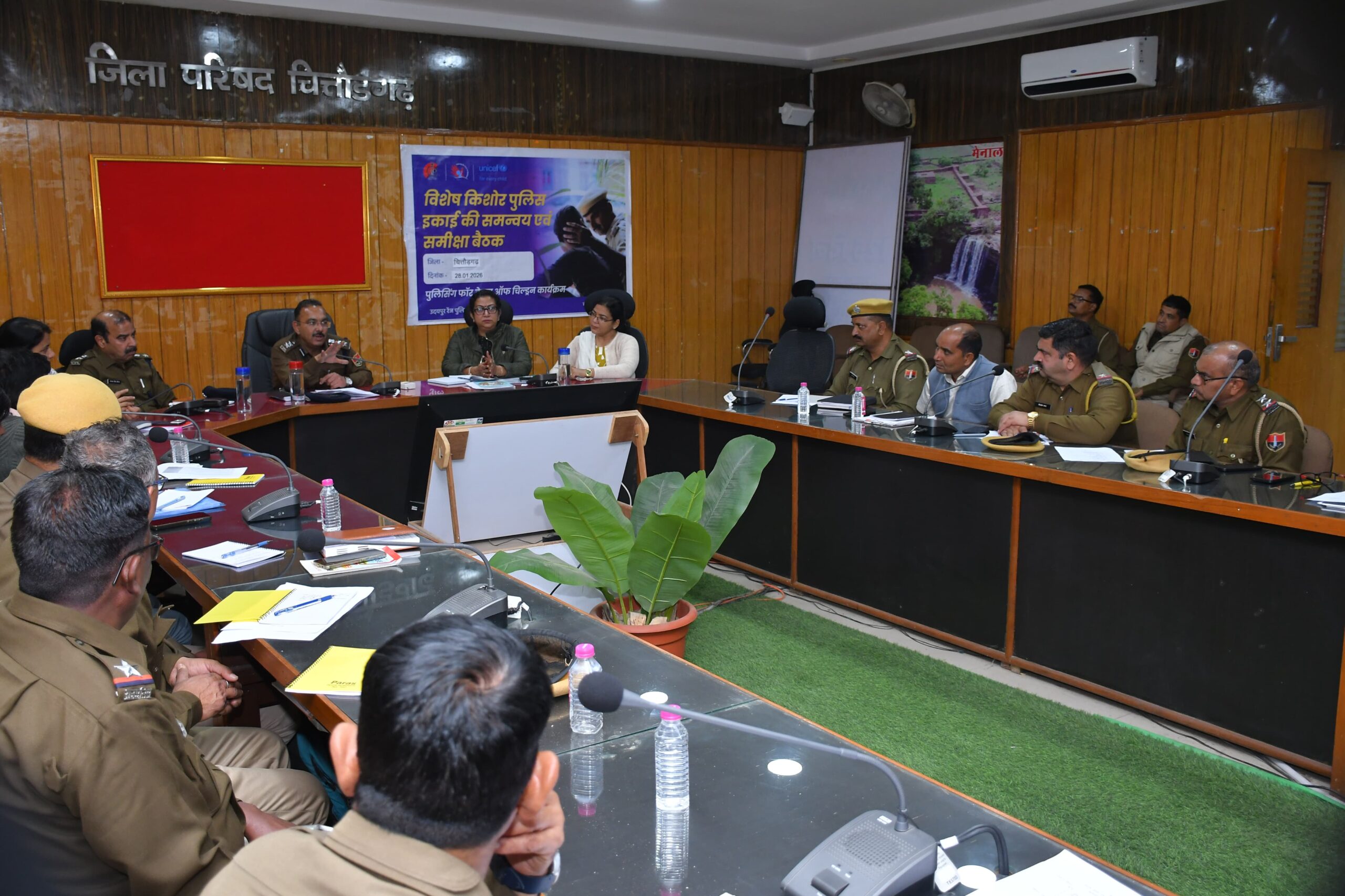 चित्तौड़गढ़,28 जनवरी। उदयपुर रेंज पुलिस द्वारा रेंज स्तर पर संचालित पुलिसिंग फॉर केयर ऑफ चिल्ड्रन कार्यक्रम के तहत चित्तौड़गढ़ जिले में किशोर न्याय (बालको की देखरख एवं संरक्षण) अधिनियम 2015 के तहत गठित विशेष किशोर पुलिस इकाई/थाना स्तर पर नियुक्त बाल कल्याण पुलिस अधिकारियों की त्रैमासिक समीक्षा बैठक बुधवार को जिला परिषद् चित्तौड़गढ़ में आयोजित हुई।