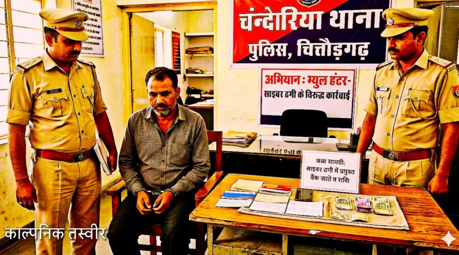 म्युल हंटर अभियान के तहत चंदेरिया पुलिस की बड़ी कार्रवाई Bank account operator used in cyber fraud arrested, transaction worth Rs 21.90 lakh exposed चित्तौड़गढ़, 16 अप्रैल। साइबर अपराधों की रोकथाम के लिए चलाए जा रहे विशेष अभियान “म्युल हंटर” के तहत चंदेरिया थाना पुलिस ने बड़ी कार्रवाई करते हुए साइबर ठगी में प्रयुक्त एक … Continue reading साइबर ठगी में प्रयुक्त बैंक खाते का संचालक गिरफ्तार, 21.90 लाख का ट्रांजेक्शन उजागर
