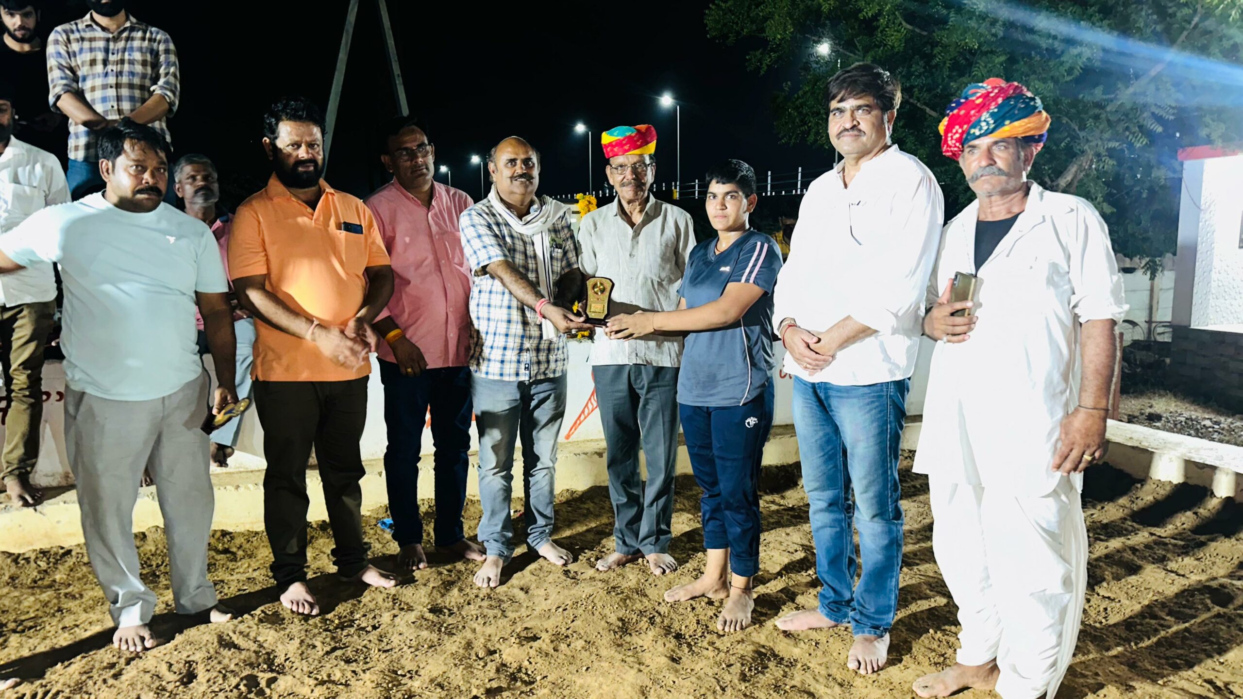 पहलवान कमलेश गुर्जर ने बताया कि रविवार को आयोजित कुश्ती प्रतियोगिता में पुरुष वर्ग 45 किग्रा में तरूण राव प्रथम, गिरिवर सिंह भाटी द्वितीय, देवेन्द्र मेनारिया तृतीय रहे। 50 किग्रा में देवीसिंह चौहान प्रथम, बालकिशन भांड द्वितीय, सुन्दर भाण्ड तृतीय, 55 किग्रा में रणवीरसिंह राठौड़ प्रथम, सुनिल गुर्जर द्वितीय, अर्जुन माली तृतीय, 60 किग्रा में रोहित रेगर प्रथम, महेन्द्र आमेरिया द्वितीय, सुनिल भील तृतीय, 65 किग्रा में अभयसिंह चौहान प्रथम, देवेन्द्र सिंह राठौड़ द्वितीय, प्रकाश जाट तृतीय रहे। 70 किग्रा में हिमांशु भांड प्रथम, राकेश जाट द्वितीय, मनोहर तेली तृतीय रहे। 75 किग्रा में रामनिवास गुर्जर प्रथम, हर्षवर्धनसिंह भाटी द्वितीय, रोहित जाट तृतीय, 85 किग्रा में राहुल गुर्जर प्रथम, प्रदीप माली द्वितीय, प्रहलाद गुर्जर तृतीय, 90 किग्रा में शुभम तेली प्रथम, मनन शर्मा द्वितीय, गौरव आचार्य तृतीय, 90 प्लस में राकेश शर्मा प्रथम, गौरव अहीर द्वितीय, देवराज गुर्जर तृतीय रहे। इसी प्रकार महिला वर्ग 45 किग्रा में भाग्यश्री सालवी प्रथम, अंजली गोस्वामी द्वितीय, तारा अहीर तृतीय, 50 किग्रा में वेदिका सालवी प्रथम, कंचन जाट द्वितीय, राधिका धाकड़ तृतीय, 55 किग्रा में लक्ष्मी गुर्जर प्रथम, सीता गुर्जर द्वितीय, शालिनी शर्मा तृतीय रही। 60 किग्रा में अुजु अहीर प्रथम, सुनिता वैष्णव द्वितीय, राधा धाकड़ तृतीय व 65 किग्रा भार वर्ग में राकन्या गुर्जर प्रथम, प्रमीला गुर्जर द्वितीय, बिन्दु रेगर तृतीय स्थान पर रही। सभी विजेता पहलवानों को अतिथियों द्वारा नकद पुरूस्कार व मेमोंटो देकर सम्मानित किया गया।